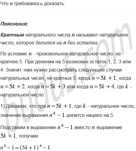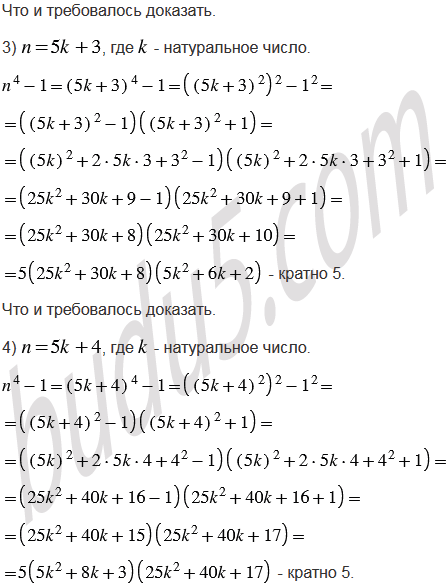 Докажите, что при любом натуральном значении , не кратном 5, значение выражения делится нацело на 5.