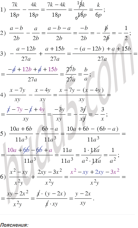3. Правило вычитания рациональных дробей с одинаковыми знаменателями.