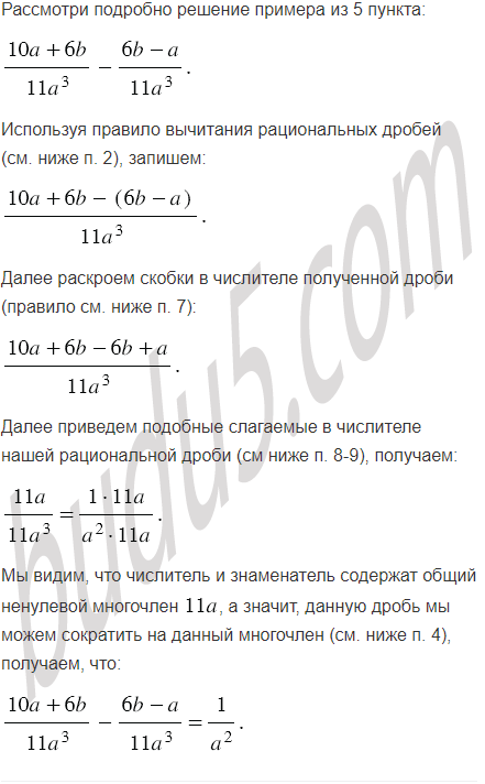 4. Правило сложения рациональных дробей с одинаковыми знаменателями.