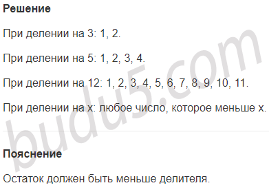 Задание № 1. Какие остатки могут получиться при делении на 3, на 5, на 12, на х?