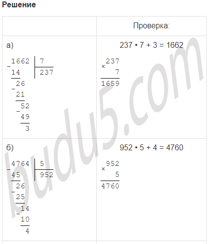 | а) 1662 на 7 | в) 3458 на 4 | д) 63570 на 7 |
