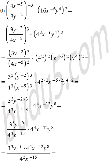 Выполните действия и приведите полученное выражение к виду, не содержащему степени с отрицательным показателем: