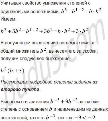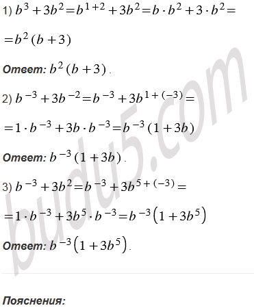 Вынесите за скобки степень с основанием b и наименьшим из данных показателей: