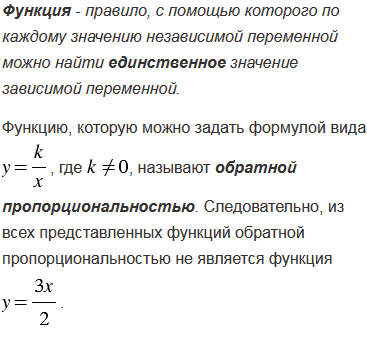 Какая из данных функций не является обратной пропорциональностью?