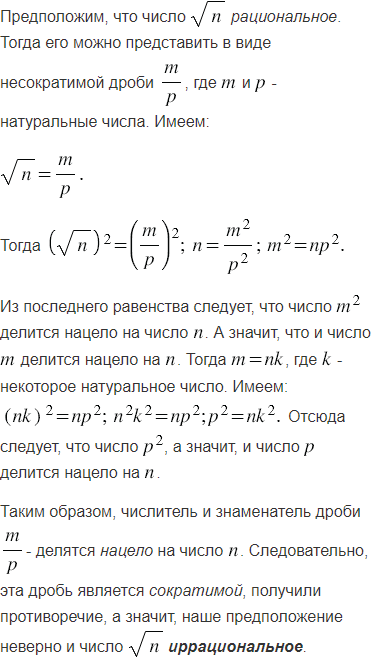 Докажите, что если натуральное число не является квадратом натурального числа, то число - иррациональное.