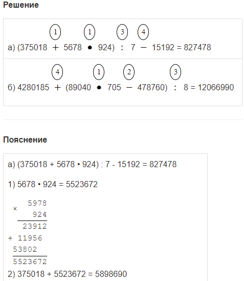 Повтори алгоритм письменного сложения, вычитания, умножения и деления многозначных чисел, а также порядок действий.