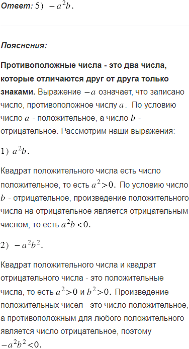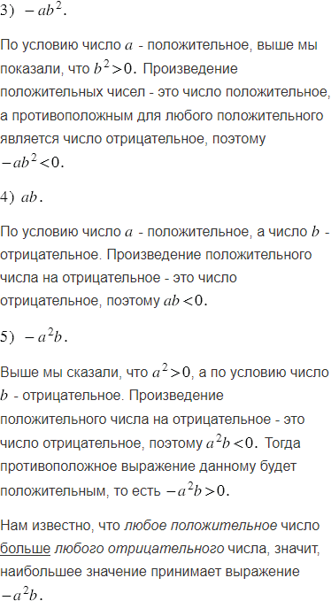 Число - положительное, а число - отрицательное. Какое из данных выражений принимает наибольшее значение:
