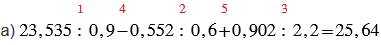 а) 23,535 : 0,9 - 0,552 : 0,6 + 0,902 : 2,2;