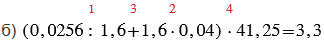 б) (0,0256 : 1,6 + 1,6 • 0,04) • 41,25;