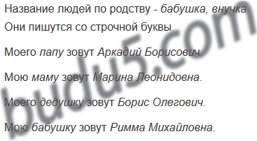 2. Найди названия людей по родству. С какой буквы - прописной или строчной - они пишутся?