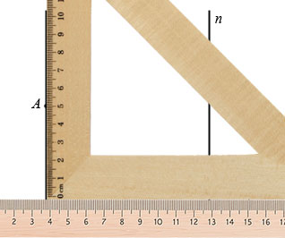 Далее вдоль второй стороны, образующей прямой угол треугольника, располагаем линейку: