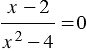 = 2, при котором числитель равен нулю, не может быть корнем рассматриваемого уравнения, так как в таком случае знаменатель обращается в ноль, чего не может быть, следовательно, данное уравнение не имеет корней.